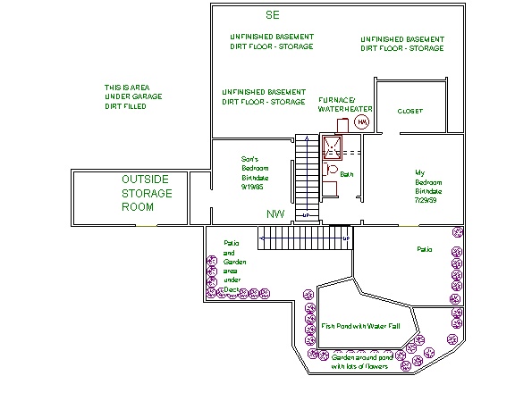 Attached is a 3 drawings one of the upstairs, one of downstairs also showing my pond out back and the third is one I sent in before showing the general slope of the lot and how the house sits. Thanks you so much for taking a look at this. I know there is something wrong. I have tried several times to sell this house and can't seem to find a buyer. When I rent it they only last a few months before they move and I am forced to move back into the house.