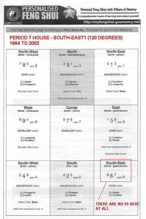 7. In this and many other examples, one cannot find #5 (under Nine Star Ki - this is Yellow soil 5).